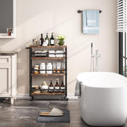 Slim 4 Tier Rolling Utility Cart With Wheels, Narrow Kitchen Storage Trolley - Brown / Black