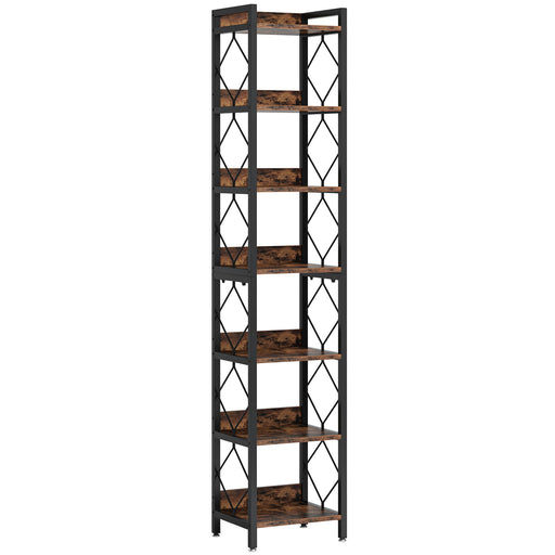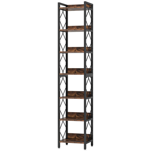 6 Tier, 8 Shelf Etagere Bookcase Storage Display Rack For Living Room - Rustic Brown