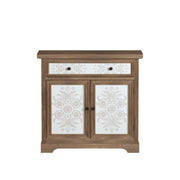 Accent Cabinet With Carved Floral Panels, Sideboard With Drawer And Double Doors - Antique Brown / White
