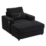 Modern Style Armchair Chaise Lounge Sofa Couch With Movable Storage Ottoman, USB Ports, Cup Holders & Side Pockets Chenille - Black