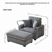 Oversized Chaise Lounge Chair With Ottoman And Storage, Comfy Reclining Chair Corduroy With Cup Holder And USB Port - Gray