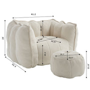 Soft Chenille Bean Bag Chair With High Resilient Foam For Living Room And Bedroom Comfortable Square Lazy Sofa With Footstool - Beige