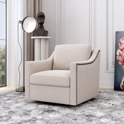 360 Degree Swivel Armchair, Skin Friendly Fabric, Ergonomic Design, Brass Nail Decorative Armchair