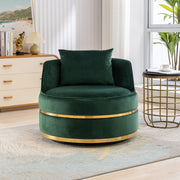 Upholstered 360 Swivel Accent Chair With Cushion, Oversized Barrel Design - Green