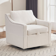 Teddy Fabric 360° Swivel Accent Chair With Upholstered Back Pillow And Rivet Armrests - Ivory