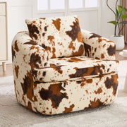 360° Swivel Accent Barrel Chair With Dual Layer Cushion, Round Seating For Living Room - Brown