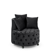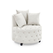 Modern Upholstered Swivel Chair With Button Tufted Design And Movable Wheels