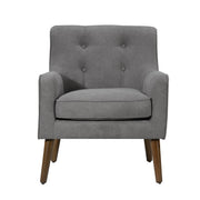 • The Ryder armchair is a classic furniture piece. Featuring a button tufted back rest, recessed arm rest, and walnut tapered wooden legs. This armchair is very comfortable with the durable soft fabric and plush full foam seat cushion. Ideal for any living space whether it be for your bedroom, living room, or office space for you or your guest to enjoy. Also available in other colors to complement your home dcor.