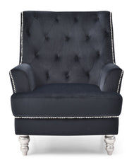This chair features a classic design with button tufted back and hand applied nailheads for a stylish traditional look.