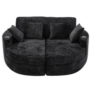 Curved Chaise Sofa, Boneless Design Upholstered Lounge With Cup Holders - Black