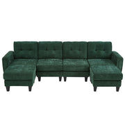Sectional Sofa With Movable Ottomans, USB Ports & Foldable Side Tables - Green