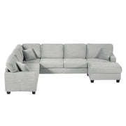 Upholstered U-Shaped Sectional Sofa With Movable Ottoman And Side Storage Pockets