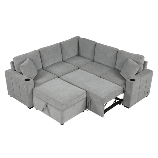 View full detailsVersatile Sofa Bed: This sectional sofa effortlessly converts into a sleeper with a pull-out mechanism, providing a space-saving solution for acc...