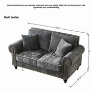 2 Seater Sofa With Rolled Arms, Tufted Upholstered Couch - Gray