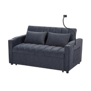 Convertible Sofa Bed Loveseat Sofa With Three USB Ports, Two Side Pockets, Two Cup Holders And 360° swivel Phone Holder For Living Room - Blue Gray