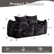 Giant Bean Bag Couch, Ultra Soft Fluffy Loveseat For Living Room Reading Chair With Pillows - Black