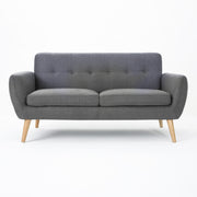 Mid Century Modern Loveseat Sofa With Button Tufted Backrest - Dark Gray