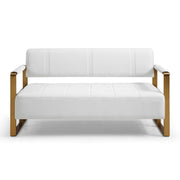 Modern Upholstery Accent Loveseat Sofa For Living Room 2 Seater With Golden Metal Arms - White