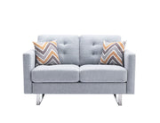 Victoria - Linen Fabric Loveseat With Metal Legs, Side Pockets, And Pillows