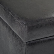 - Upholstered with a durable Distressed Black Vegan Faux Leather