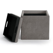 Rockwood - Cube Storage Ottoman With Tray - Cloud Gray