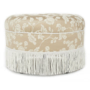 Yolanda - Floral Round Upholstered Accent Ottoman - Champagne Beige / Ivory