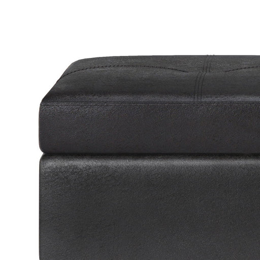 View full detailsHand constructed using solid wood, engineered wood and high density foam Upholstered with a durable Distressed Black Vegan Faux Leather Features l...