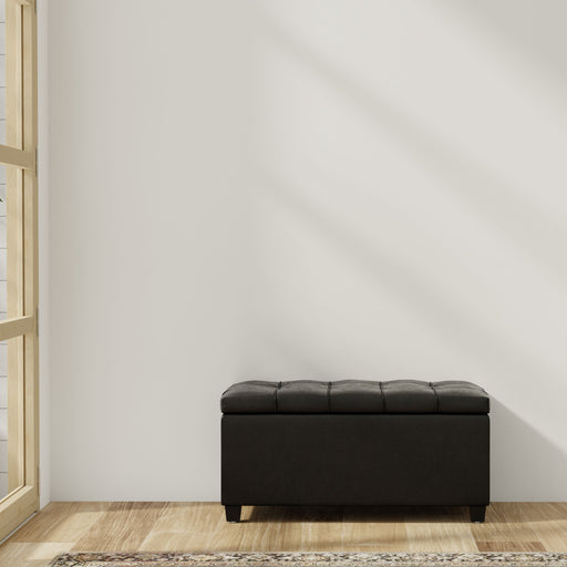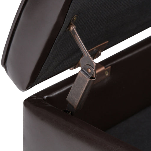 View full detailsHand constructed using solid wood, plywood, foam Upholstered with a durable Tanners Brown Vegan Faux Leather Features lift up lid with child safet...