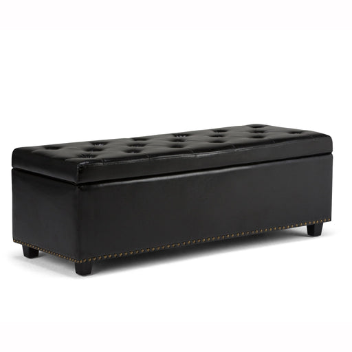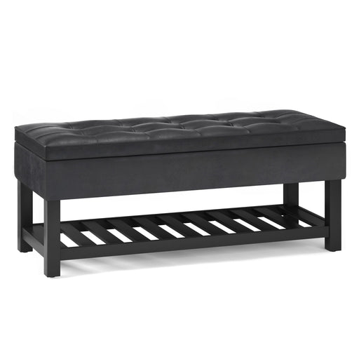 View full detailsUpholstered with Midnight Black Vegan Faux Leather Constructed using solid wood, plywood, foam Features 1 middle flip over serving tray, 2 lift up...