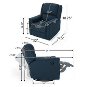 Contemporary Glider Recliner With Swivel Function And Plush Fabric Upholstery - Navy Blue