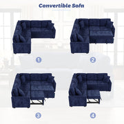 L-Shape Sofa Bed Pull-Out Sleeper Sofa With Wheels, USB Ports, Power Sockets For Living Room - Navy Blue