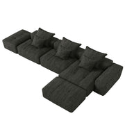 Modern Oversized Modular Sectional Sofa, Sparkling Fabric Soft Cushion Sofa With 6 Pillows, 6 Pieces Diy Combination Tufted Sofa, No Assembly Required - Black