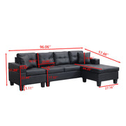 Sectional Sofa Set For Living Room With L Shape Chaise Lounge, Cup Holder, Left Or Right Hand Chaise Modern 4 Seat - Black