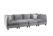 - Comfort, Style, and Quality! These are the important features for the Simona Collection. This beautiful luxurious 6-piece Modular Sectional Chaise with Ottoman will fit into any living room and impress your guests! The comfortable gray velvet fabric with matching accent pillows will light up your living room with the most trendiest of looks. The size will allow you to welcome multiple guests where everyone will be able to enjoy entertainment together.