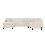 U Shaped Sectional Sofa, Corner Living Room Couch With Built In Cup Holders, Storage, USB Ports - Beige