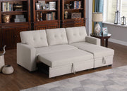 Upholstered Pull Out Sectional Sofa & Chaise - Beige