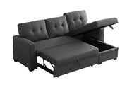 Upholstered Pull Out Sectional Sofa & Chaise - Dark Gray