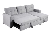 Upholstered Pull Out Sectional Sofa With Chaise - Light Gray