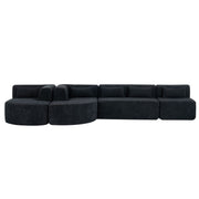 • Curved Chaise Lounges: Featuring two movable chaise lounges with a unique curved design, this sofa offers an attractive silhouette while providing ample space for relaxation. Ideal for a comfortable movie night, it allows you and a friend to stretch out and unwind.