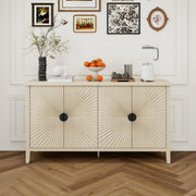 4 Door Sideboard, Carved Sideboard Buffet Cabinet With Storage, Modern Coffee Bar Cabinet With Adjustable Shelf For Living Room, Dining Room, Kitchen - Natural