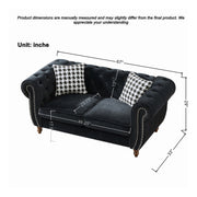 Chesterfield 3 And 2 Seater Velvet Upholstery Sofa With Roll Armrest & Nailhead Fabric Couch For Living Room & Office - Black