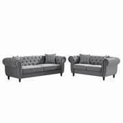 Chesterfield Velvet Upholstery Fabric Sofa With Roll Armrest & Nailhead, 3 And 2 Seater - Gray