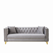 3 Seater Deep Seat Sofa, Sofa With Button Nailhead, Square Arm Couches, Furniture For Living Room - Gray