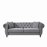 Mid Century Modern Chesterfield Velvet Upholstery Fabric Sofa With Roll Armrest & Nailhead - Gray
