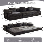 Convertible Floor Sofa Bed With Fixed Shape Frame, Boneless Modular Sectional Sofa, For Living Room - Black