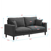 Modern Upholstered 74" High Resilience 3 Seater Sofa, Wooden Frame, Comfy - Dark Gray