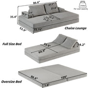 Multifunctional Convertible Sofa Bed With 2 Tumbler Backrests And 2 Pillows, Diy Modern Upholstered Couch - Light Gray