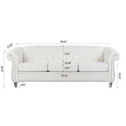 84.65" Rolled Arm Chesterfield 3 Seater Sofa - White