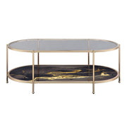 • Fiorella - Marble Print Glass Coffee Table - Black