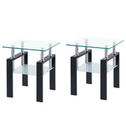 Modern 2 Piece Tempered Glass Small Table, End Table For Living Room, Sleek Waterfall Design - Transparent